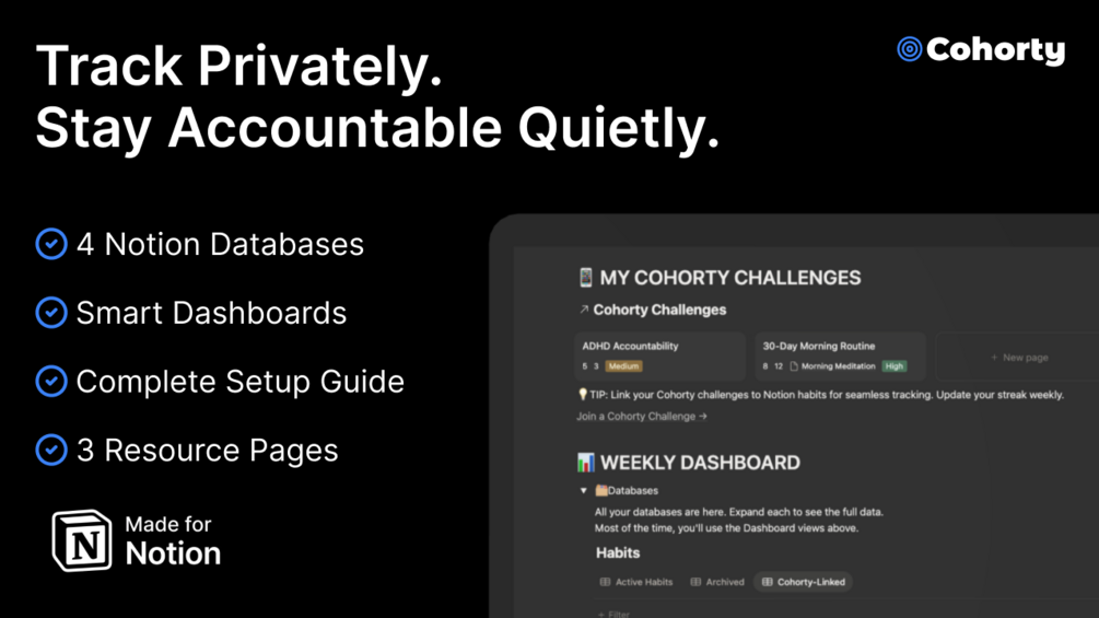 Build simple habits in 3 weeks. Solo. Simple. Structured. Perfect for easy-to-moderate habits that form faster than you think. Built by Cohorty. Free forever.